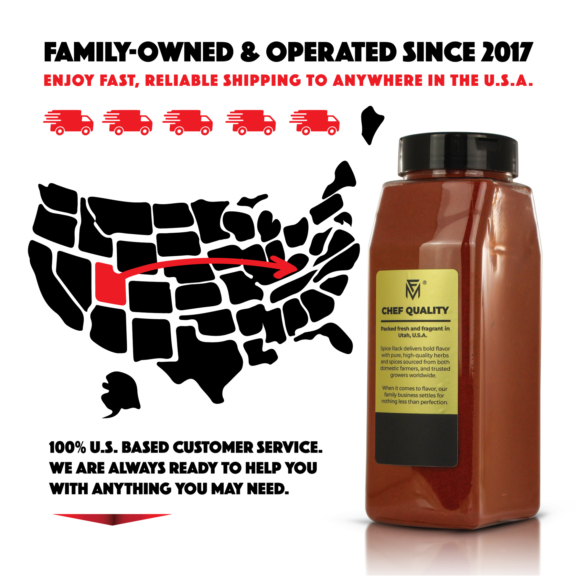 We source only the finest, most trusted ingredients from top-tier American farmers and select global suppliers. Every Spice Rack product is culinary grade, carefully inspected, and packed fresh in Utah to ensure unbeatable flavor, freshness, and purity in every bottle.